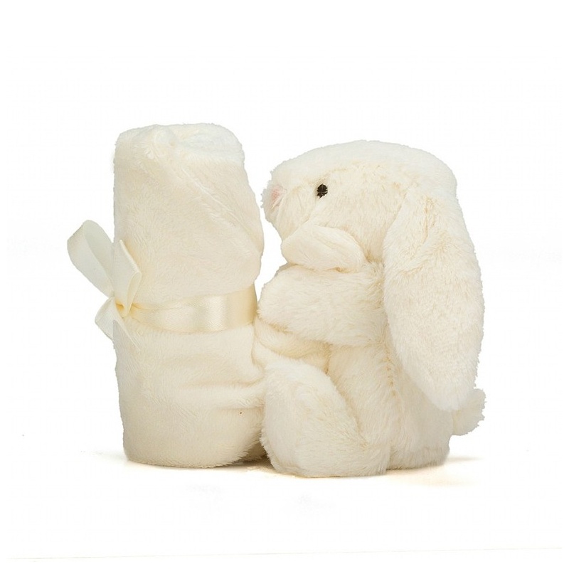Enroulé et serré avec un joli ruban, ce lapin couleur crème deviendra le compagnon idéal du petit bébé à qui vous l'offrirez...